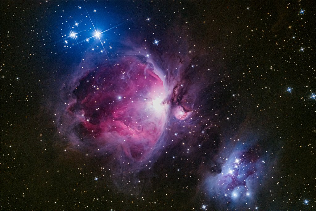 10 Orionnebel M 42 Der Orionnebel ist ein leuchtender Gasnebel, in dem neue Sterne entstehen. Er ist gut 1000 Lichtjahre entfernt und kann in klaren Winternächten mit bloßem Auge ausgemacht werden.